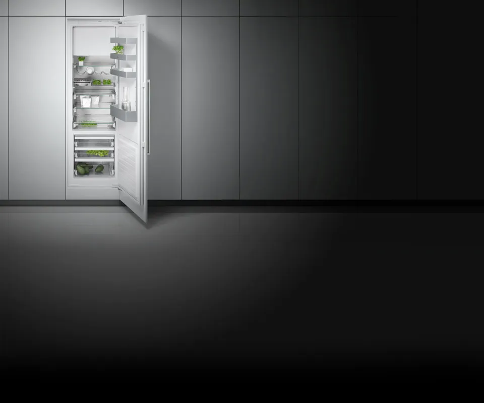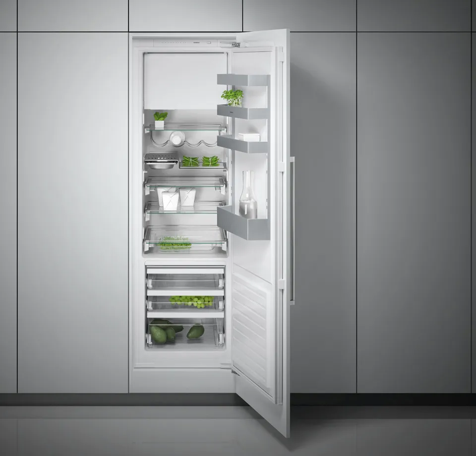 - Легкий доступ к продуктам: полностью выдвижные полки и ящики